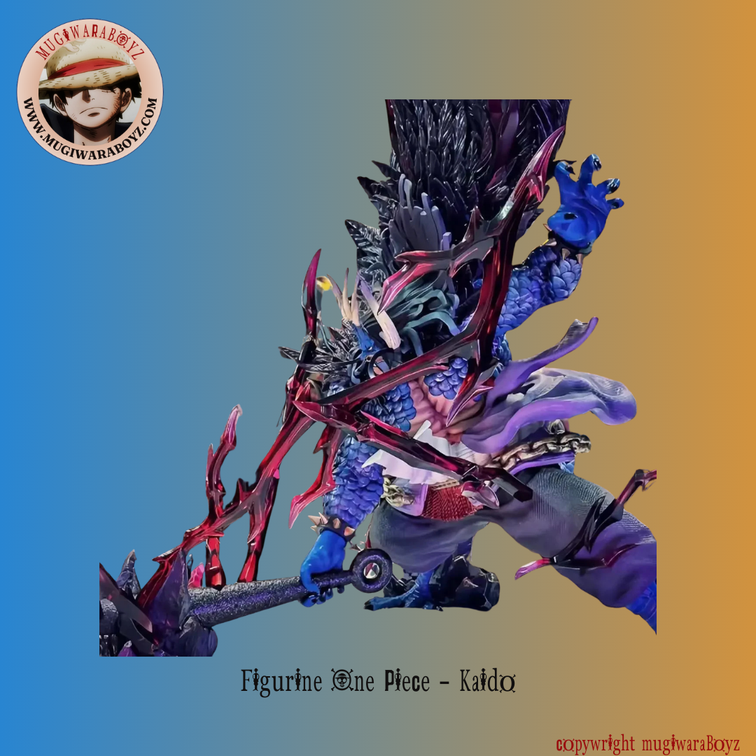 This spectacular figure captures Kaido in all his colossal power, in a moment of pure dominance. The Beast Lord's enormous mace is raised with impressive force, ready to slam into the ground with devastating violence. Kaido's expression is fierce and determined, with his piercing eyes piercing the air. His bulging muscles and flowing coat add to the intensity of the action. The figure's details are striking: the scales on his body, his tribal tattoos, and the texture of his club are rendered with impressive precision. The ground around him is modeled as if it were cracking under the impending impact, reinforcing the impression of raw power. A true masterpiece for any collector who admires Kaido's majesty!