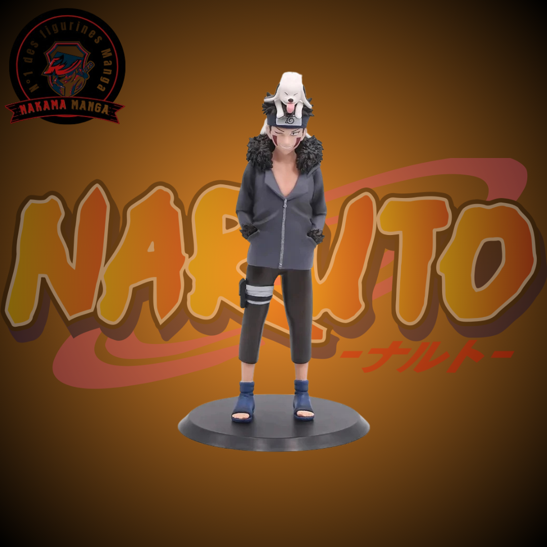• Posture : Kiba est représenté debout dans une pose confiante, avec Akamaru sur sa tête, prêt à se lancer dans l'action. Sa posture illustre sa rapidité et son esprit combattif, tandis qu'Akamaru apporte un élément de complicité entre les deux personnages.