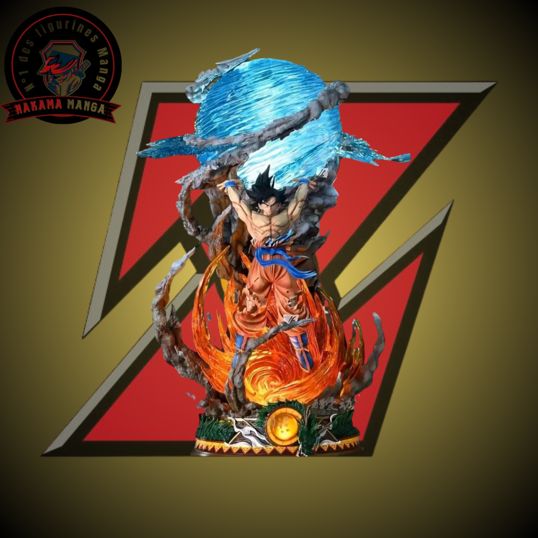 • Goku préparant un Genkidama : Goku est sculpté dans sa posture emblématique, les mains levées vers le ciel en train de concentrer l’énergie pour créer le Genkidama, un des mouvements les plus puissants de l'univers Dragon Ball. L’expression de détermination sur son visage et son énergie palpable sont parfaitement capturées.