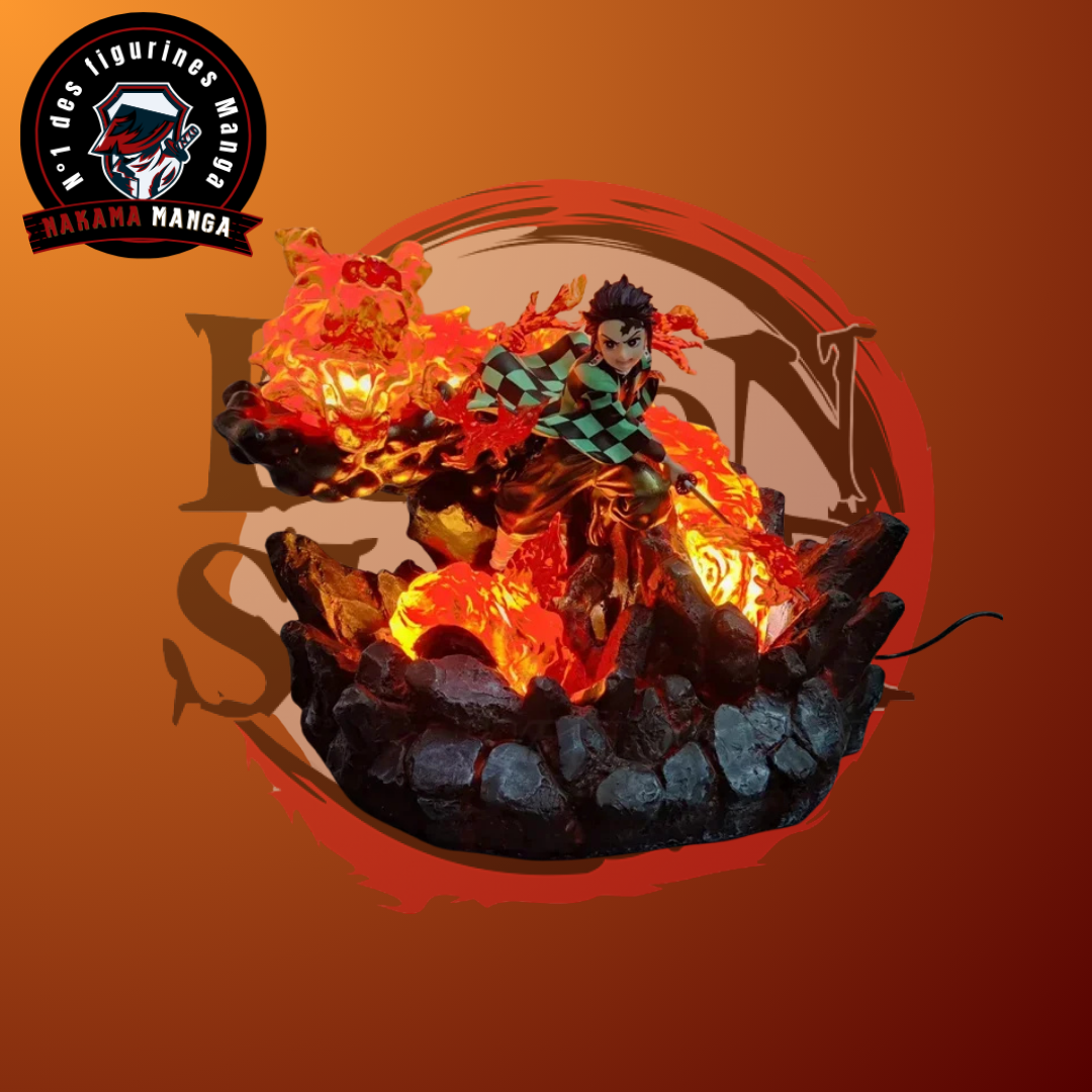 Ajoutez cette figurine spectaculaire de Tanjiro Kamado à votre collection ! Capturant un moment épique de la série Demon Slayer, cette pièce unique représente Tanjiro en pleine bataille, tenant son katana cassé avec une détermination sans égale. Entouré d'un dragon de feu en pleine action, l’effet visuel est amplifié grâce aux LED intégrées, créant une aura lumineuse qui fait ressortir la puissance de son attaque. Les détails méticuleux du dragon enflammé et de l'expression intense de Tanjiro en font une œuvre d'art saisissante. Parfaite pour les fans qui recherchent une figurine dynamique et lumineuse, cette pièce ne manquera pas de briller dans votre collection. Ne laissez pas passer cette occasion d'ajouter une touche spectaculaire à votre étagère !