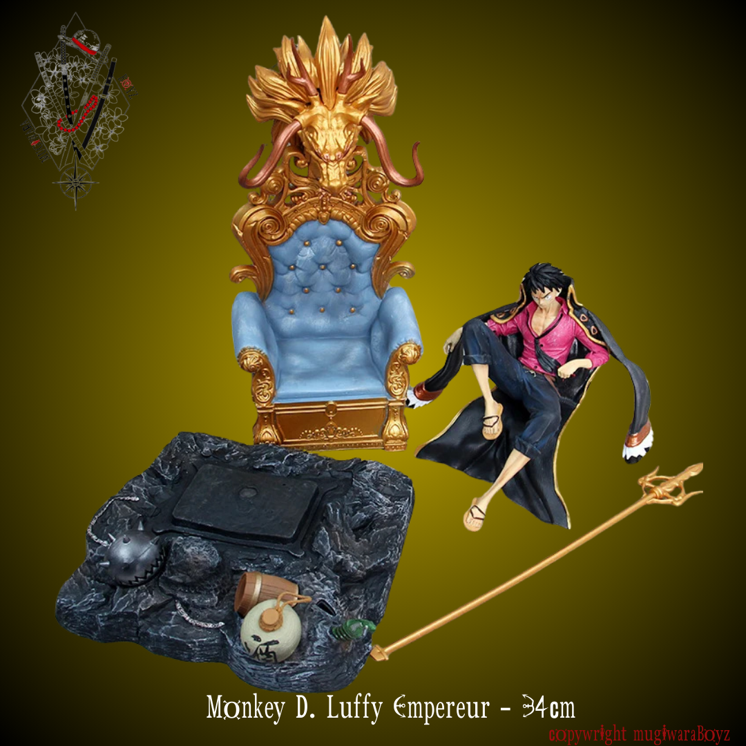 Nous vous présentons cette magnifique figurine de Luffy siégeant sur son trône.