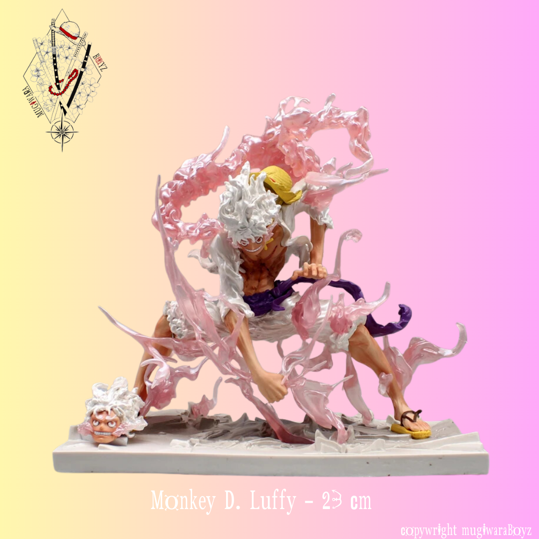 Découvrez la puissance ultime avec cette figurine de Monkey D. Luffy en Gear 5, mesurant 23 cm, qui représente le capitaine des Chapeaux de Paille dans sa forme la plus redoutable. Capturant l'intensité et la dynamique de Luffy lors de l’utilisation de son Haki, cette figurine illustre la maîtrise de ses capacités, avec des détails saisissants qui reflètent son énergie explosive. Fabriquée à partir de matériaux de haute qualité, chaque élément est minutieusement sculpté pour montrer Luffy dans une pose de combat impressionnante, avec son expression déterminée, ses vêtements déchirés par la puissance de sa transformation et les effets lumineux de Haki qui l’entourent.