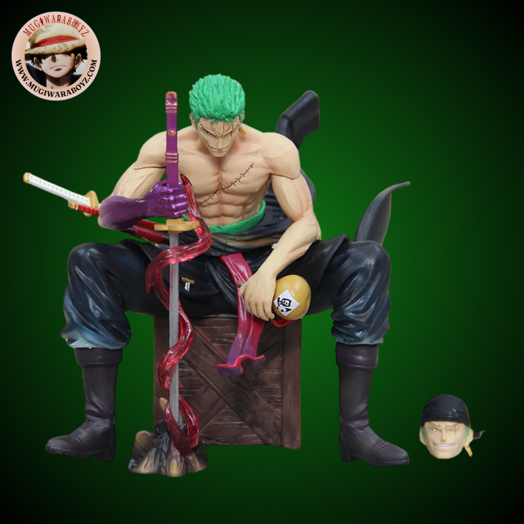 Plongez dans l’univers de One Piece avec cette figurine détaillée de Roronoa Zoro, le redoutable épéiste des Mugiwara. Assis, bouteille à la main, il incarne la force et la détermination qui font de lui l’un des combattants les plus emblématiques de la série.