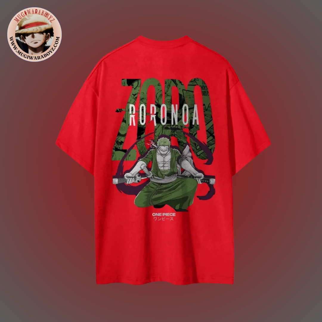 • Design subtil et impactant : Impression dans le dos du légendaire Roronoa Zoro en posture de combat — sabre à la bouche, bandana noué, aura tranchante prête à découper l’air. L’avant du t-shirt reste sobre, laissant toute la surprise au dos : une présence qui ne se voit pas immédiatement, mais qui se fait sentir.