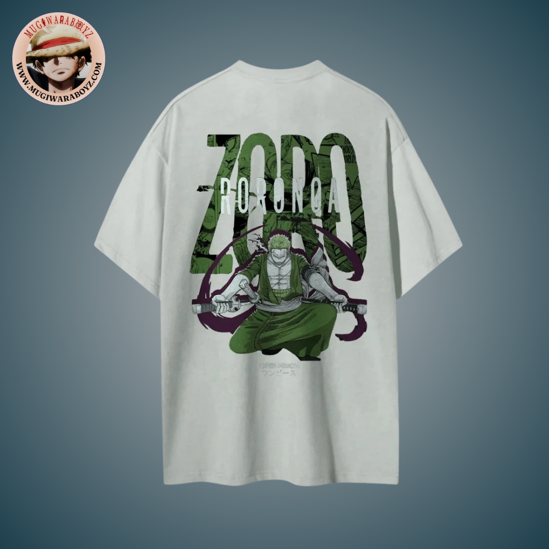 • Signature stylée : Le nom Zoro ou "三刀流" (Santoryu) discret sous le col ou sur la manche — un clin d'œil aux initiés.