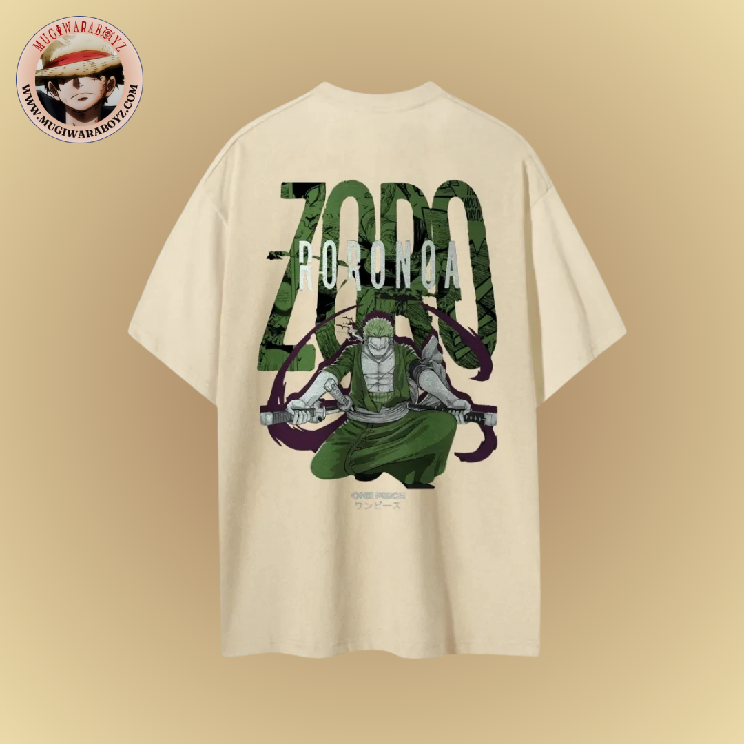 • Signature stylée : Le nom Zoro ou "三刀流" (Santoryu) discret sous le col ou sur la manche — un clin d'œil aux initiés.