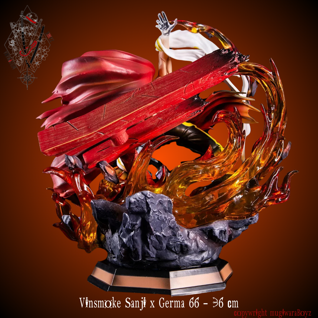 Mesurant 36 cm et possédant des finitions soignées, cette figurine possède des détails époustouflants, mettant parfaitement en valeur Sanji sous cette forme. Son dynamisme ainsi que sa tenue ajoute un coté réaliste, tandis que la posture et et les flammes nous projette à l'intérieur de l'œuvre.
